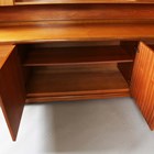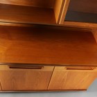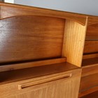 A mid/late 20th century Danish teak wall unit, height 165cm, width 201cm, depth 45.5cm.