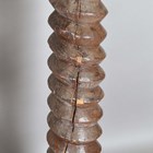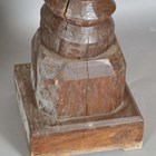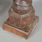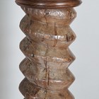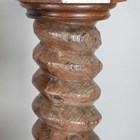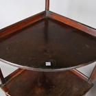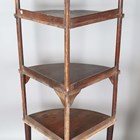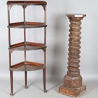 A 19th century French walnut mechanical wine screw, converted to a torchère, height 135cm, width 31cm, together with a four-tier corner whatnot, height 156cm, width 64cm.