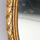 A 19th century gilt composition wall mirror, the shaped frame moulded with berried laurel leaves, height 113cm, width 64cm (later gilt painted).