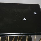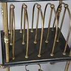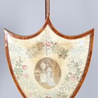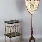 A late Victorian ebonized and gilt brass two-tier Canterbury whatnot, on downswept legs, height 82cm, width 51cm, depth 39cm, together with a 19th century polescreen, inset with a Regency silkwork panel, height 165cm.