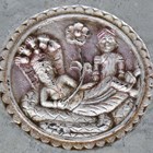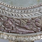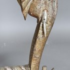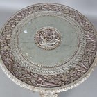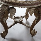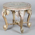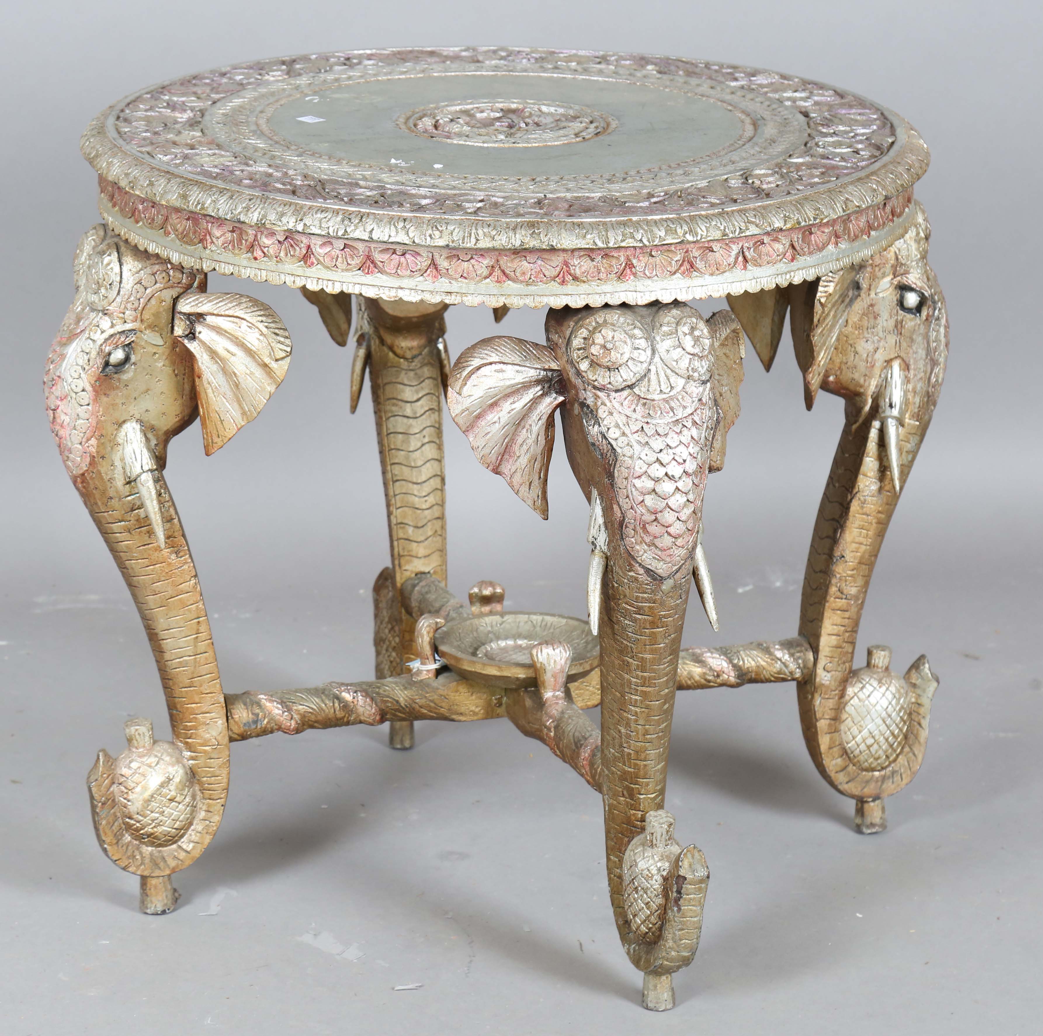 A 20th century Indian silver painted hardwood circular occasional table, on elephant head supports, height 65cm, diameter 70cm.