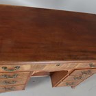 An early 20th century George III style mahogany kneehole desk, height 75cm, width 90cm, depth 46cm, together with a 19th century mahogany swing frame mirror, width 54cm.