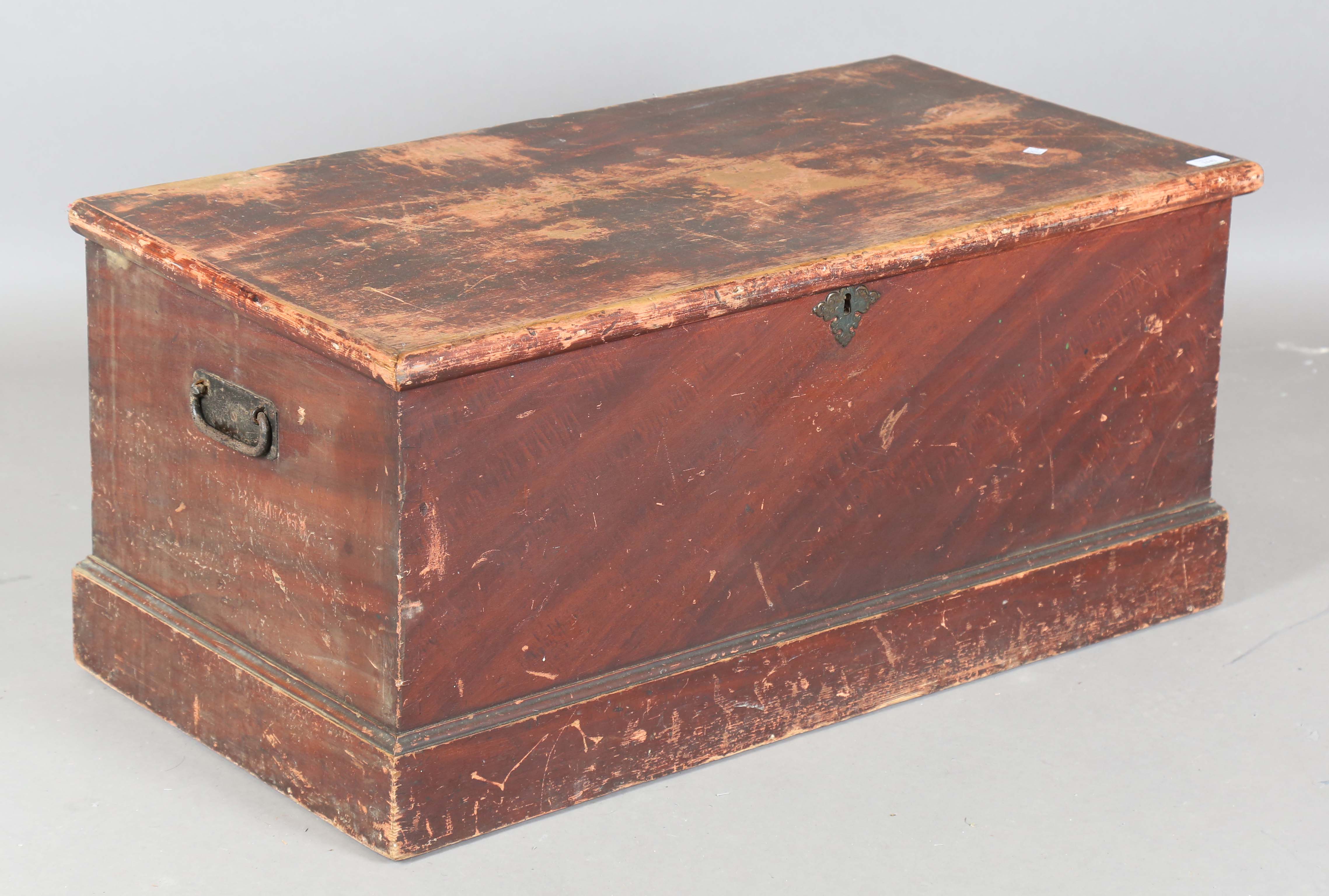 A Victorian scumbled pine trunk, height 46cm, width 99cm, depth 50cm.