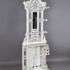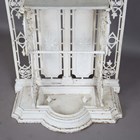 A late Victorian white painted cast iron hallstand by Coalbrookdale, the mirrored panel back fitted with coat hooks above a marble panel and stick stand, bearing lozenge registration marks to rear and base of drip pan, height 207cm, width 77cm (lacking section of trim on front).