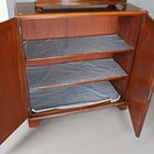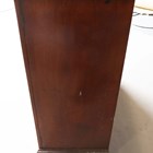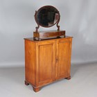 A late Victorian mahogany two-door side cupboard, height 106cm, width 106cm, depth 44cm, together with an Edwardian mahogany swing frame dressing table mirror, width 74cm.