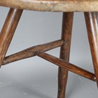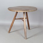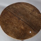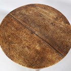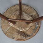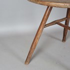 An 18th century and later fruitwood cricket table, the thick three-piece top raised on turned ash legs, height 70cm, diameter 76cm.
