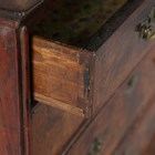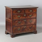 An early 18th century provincial walnut and oak chest of oak-lined drawers, all with crossbanded borders, height 91cm, width 96cm, depth 51cm (alterations).