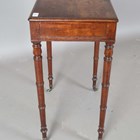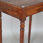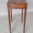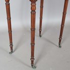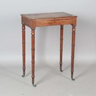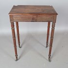 A late George III mahogany side table, the moulded top above a single drawer, on ring turned legs and castors, height 74cm, width 53.5cm, depth 35cm.