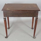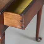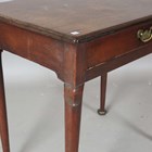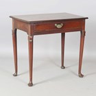 A George II mahogany side table, the moulded top above a single drawer, the turned legs with carved lappet shoulders and pad feet, height 70.5cm, width 76cm, depth 47cm.