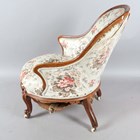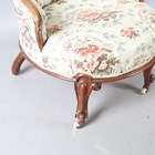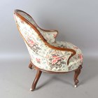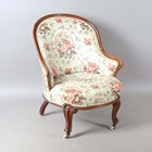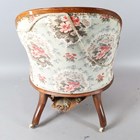 A mid-Victorian mahogany showframe armchair, on carved cabriole legs, height 84cm, width 67cm, depth 74cm (some faults).