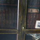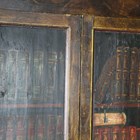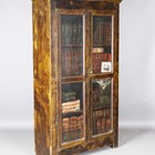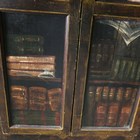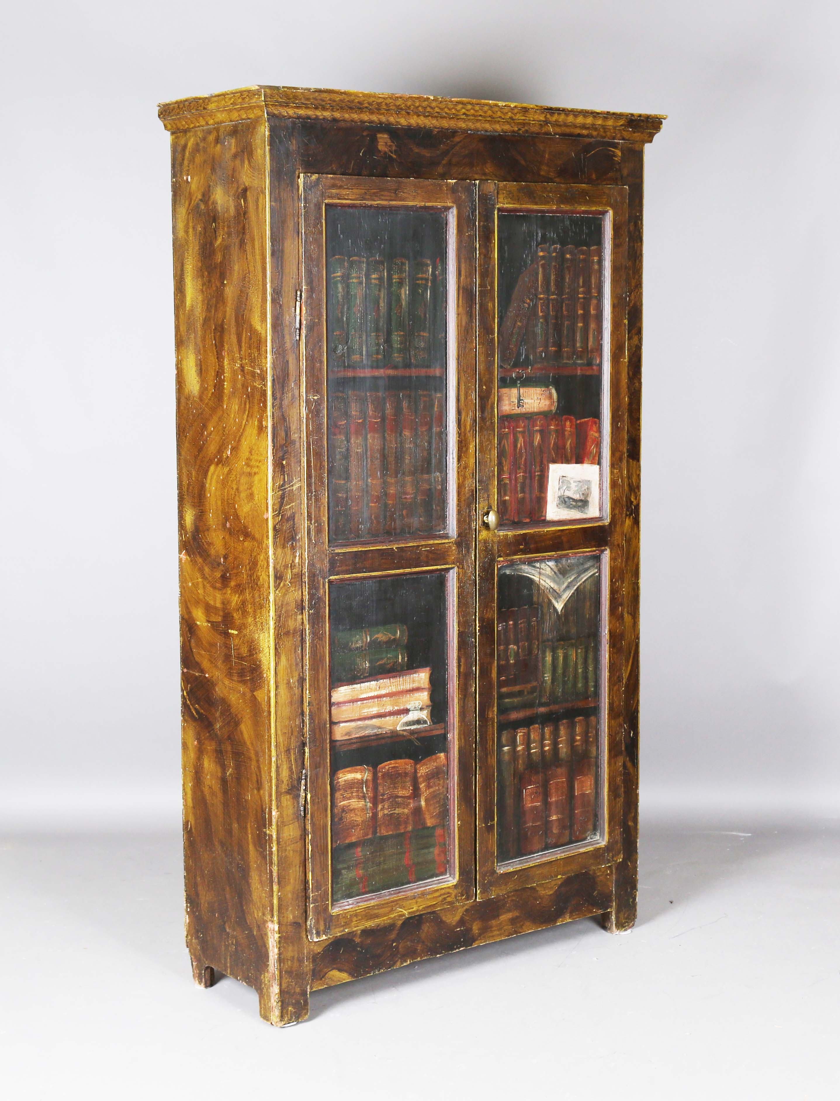 A French painted pine two-door cupboard, the doors with trompe l'oeil effect imitating bookshelves, height 200cm, width 114cm, depth 41cm.