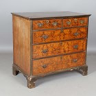 An 18th century and later walnut chest of oak-lined drawers, all with feather banded borders, height 94.5cm, width 101cm, depth 58.5cm (alterations and faults).