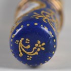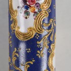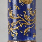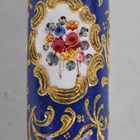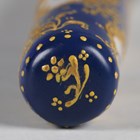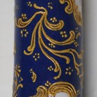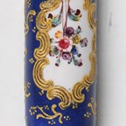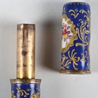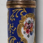 A mid-18th century South Staffordshire enamel and gilt metal cylindrical bodkin case, decorated with painted flowers and gilt scrolls on a blue ground, length 10.3cm.