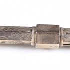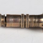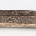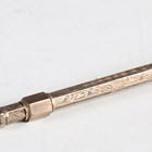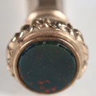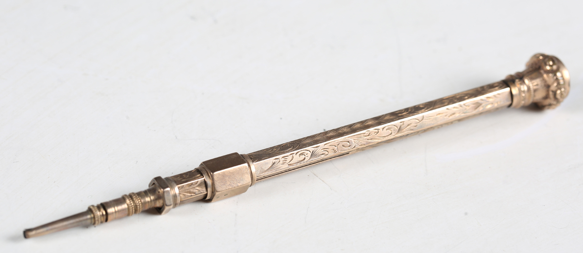 A Victorian gold plated slide-action propelling pencil with foliate engraved decoration and a bloodstone inset terminal, length 9.5cm, cased.