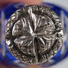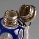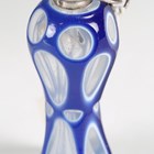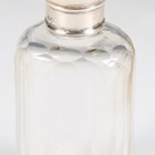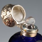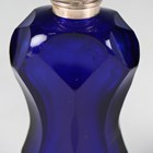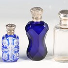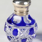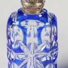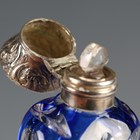 A small 19th century blue flash overlaid glass scent bottle with silver lid and suspension loop, length 6cm, together with two other similar blue flashed glass scent bottles and two other glass and silver mounted scent bottles.