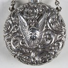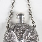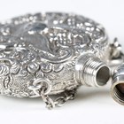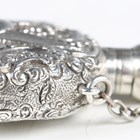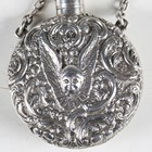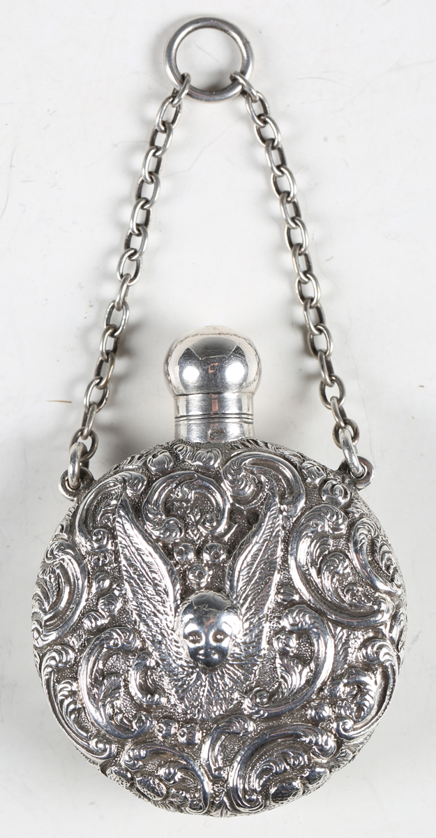 A mid-Victorian cast silver scent bottle of flattened circular form, each side cast with amorini and foliate scrolls, London 1874 by Thomas Johnson, length 6.5cm.