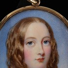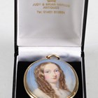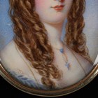 Cornelius Beavis Durham - a mid-19th century watercolour on ivory oval portrait miniature of a young lady with blonde ringlets, initialled 'C D', mounted within a gilt metal frame with glazed locket back, 6cm x 4.8cm. Note: a non-transferrable ivory exemption certificate has been granted for the sale of this item.