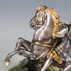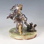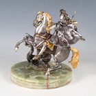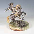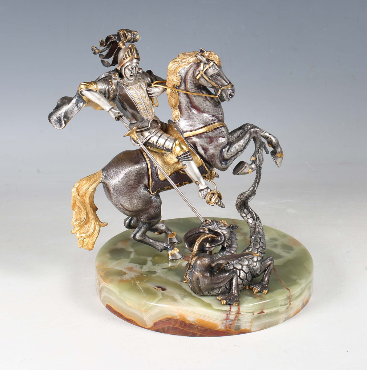 Giuseppe Vasari - a late 20th century Italian limited edition silvered and gilt cast bronze figure of St George and the Dragon, bearing cast signature, raised on a circular onyx base bearing limited edition number '90/400', height 24cm.