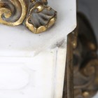 A pair of mid/late 19th century French brown patinated cast bronze figures of seated putti, in the manner of Claude Michel Clodion, both raised on gilt bronze and white marble bases, height 45cm (some faults to bases).