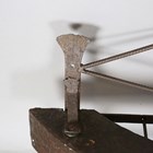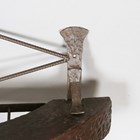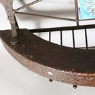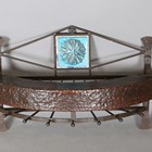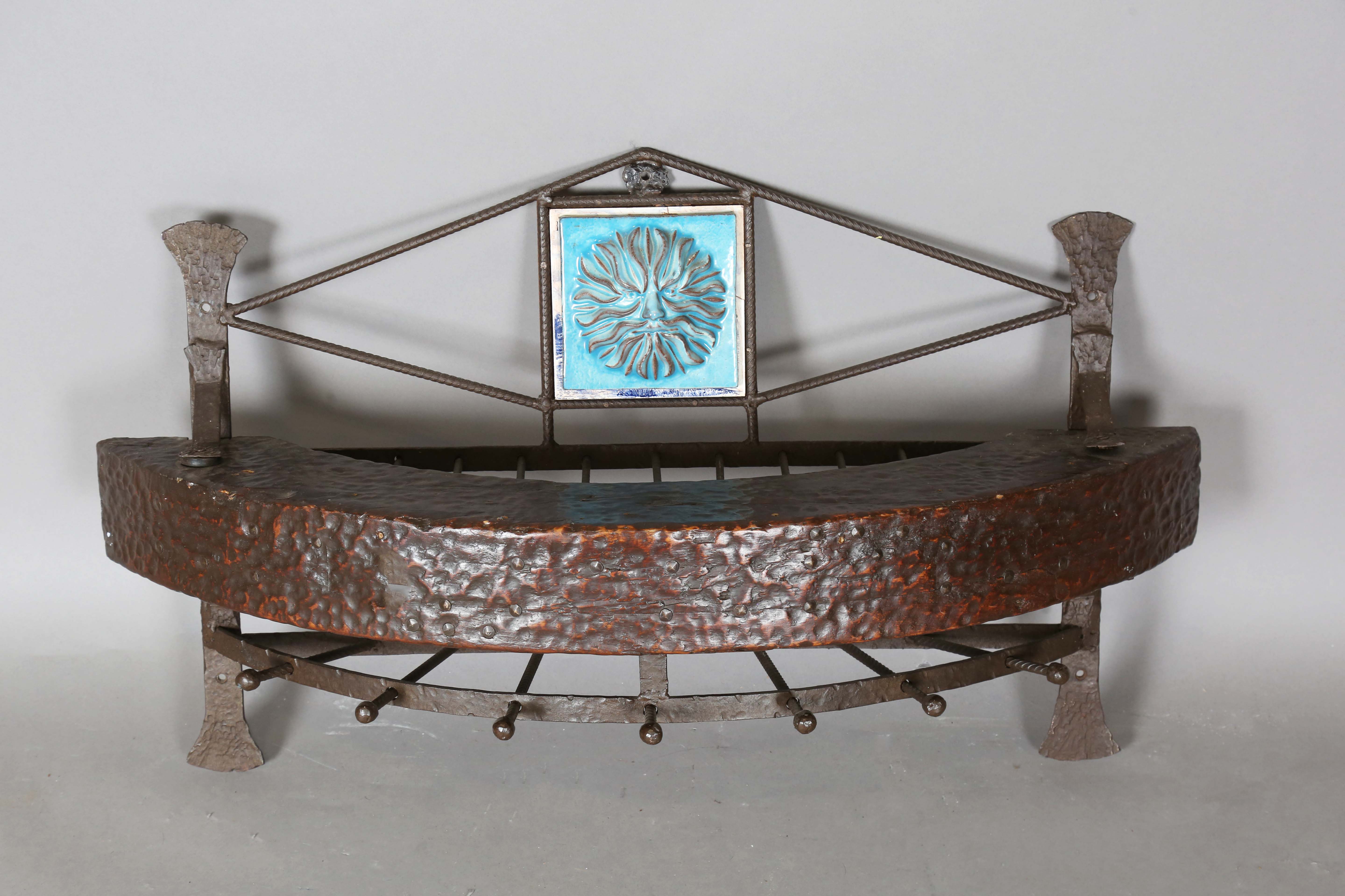 A late 20th century Arts and Crafts style wrought iron coat rack of demi-lune form, width 87cm.