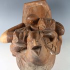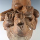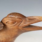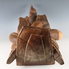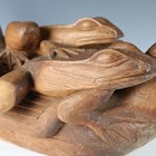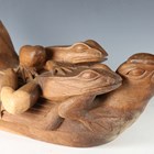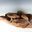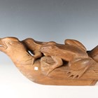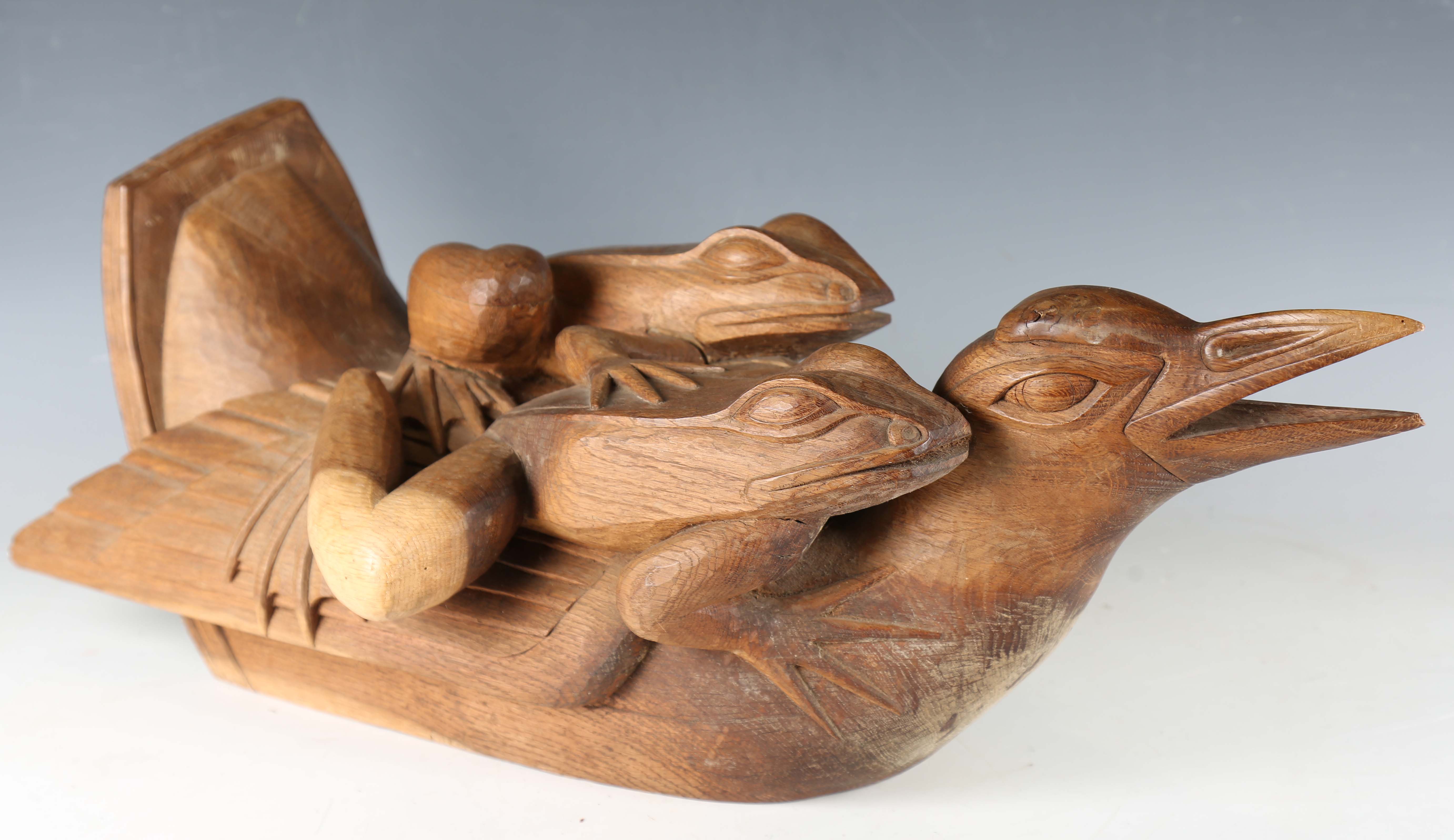 Andrew Forbes - 'Moorhen and Frogs, Number 2', a 20th century carved oak model of two frogs clambering on the back of a moorhen, bearing label to underside, length 73cm.