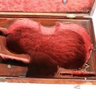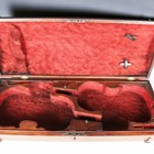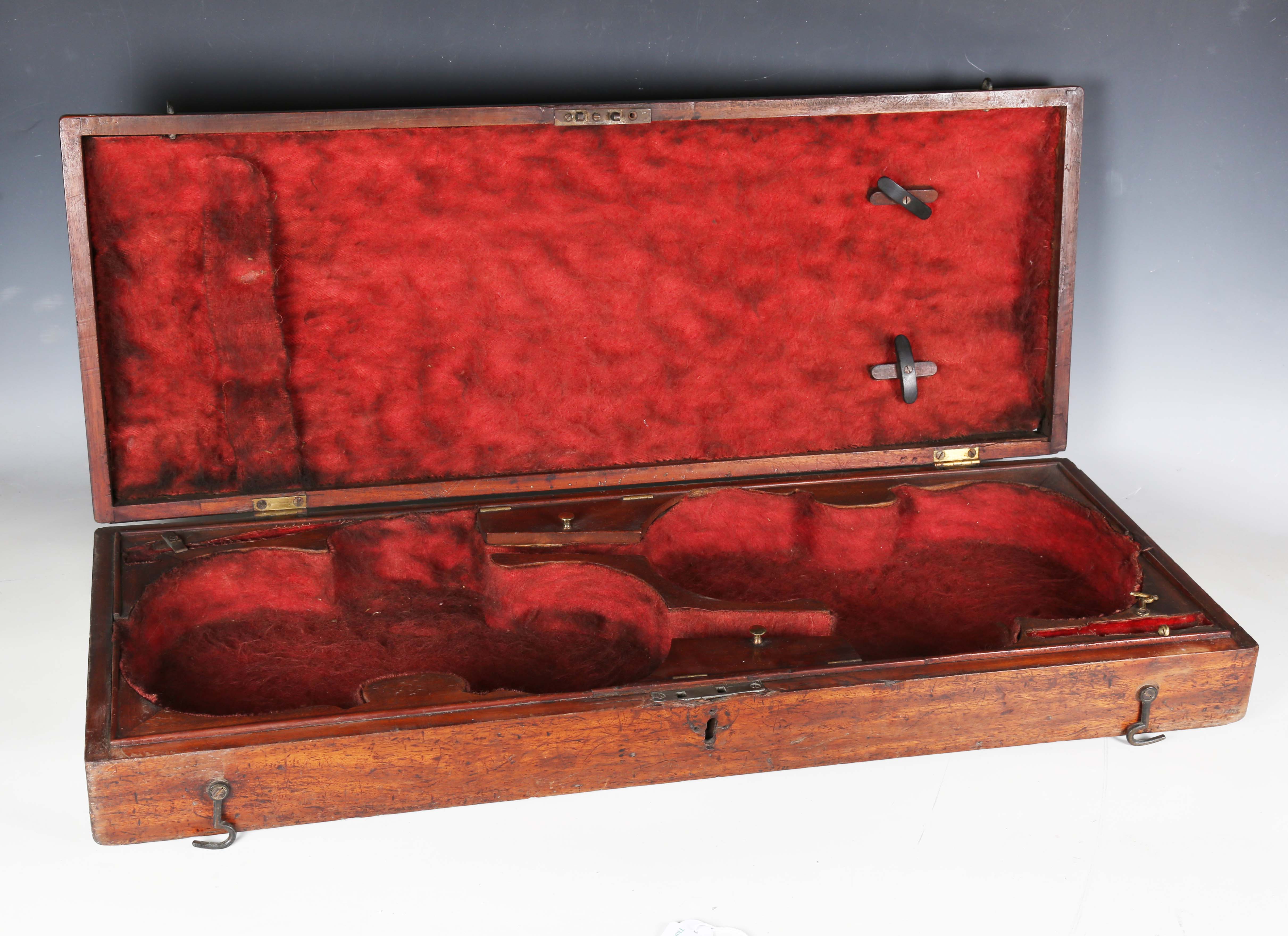 An early 19th century mahogany double violin case with domed lid and brass handle, length 78cm.