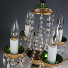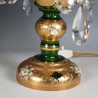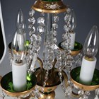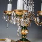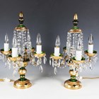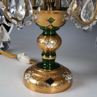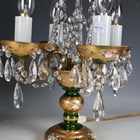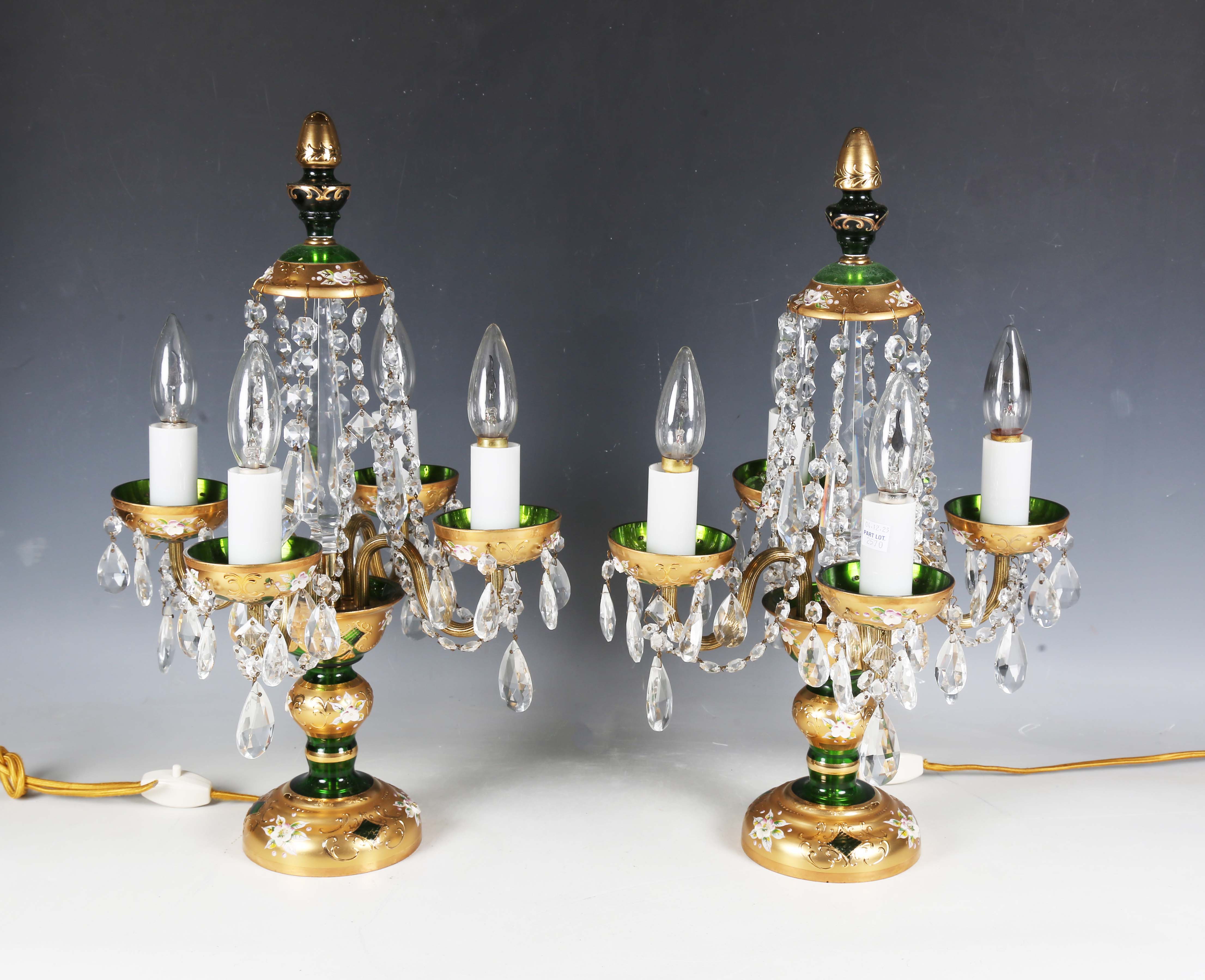 A pair of mid-20th century Bohemian green glass and gilt decorated four-light table lamps, hung with clear glass swags, height 50cm.