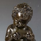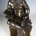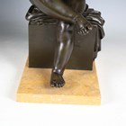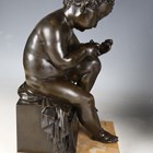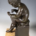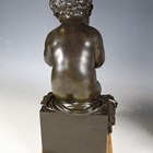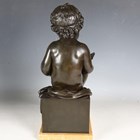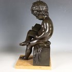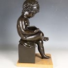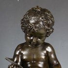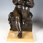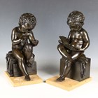 After Charles-Gabriel Sauvage, also known as Lemire - a pair of 19th century French patinated cast bronze figures of seated putti, one modelled reading, the other writing, each raised on a Siena marble plinth, heights 39cm and 37cm.