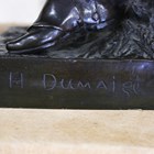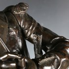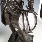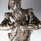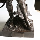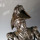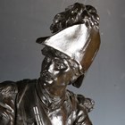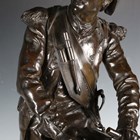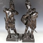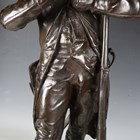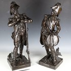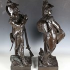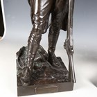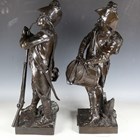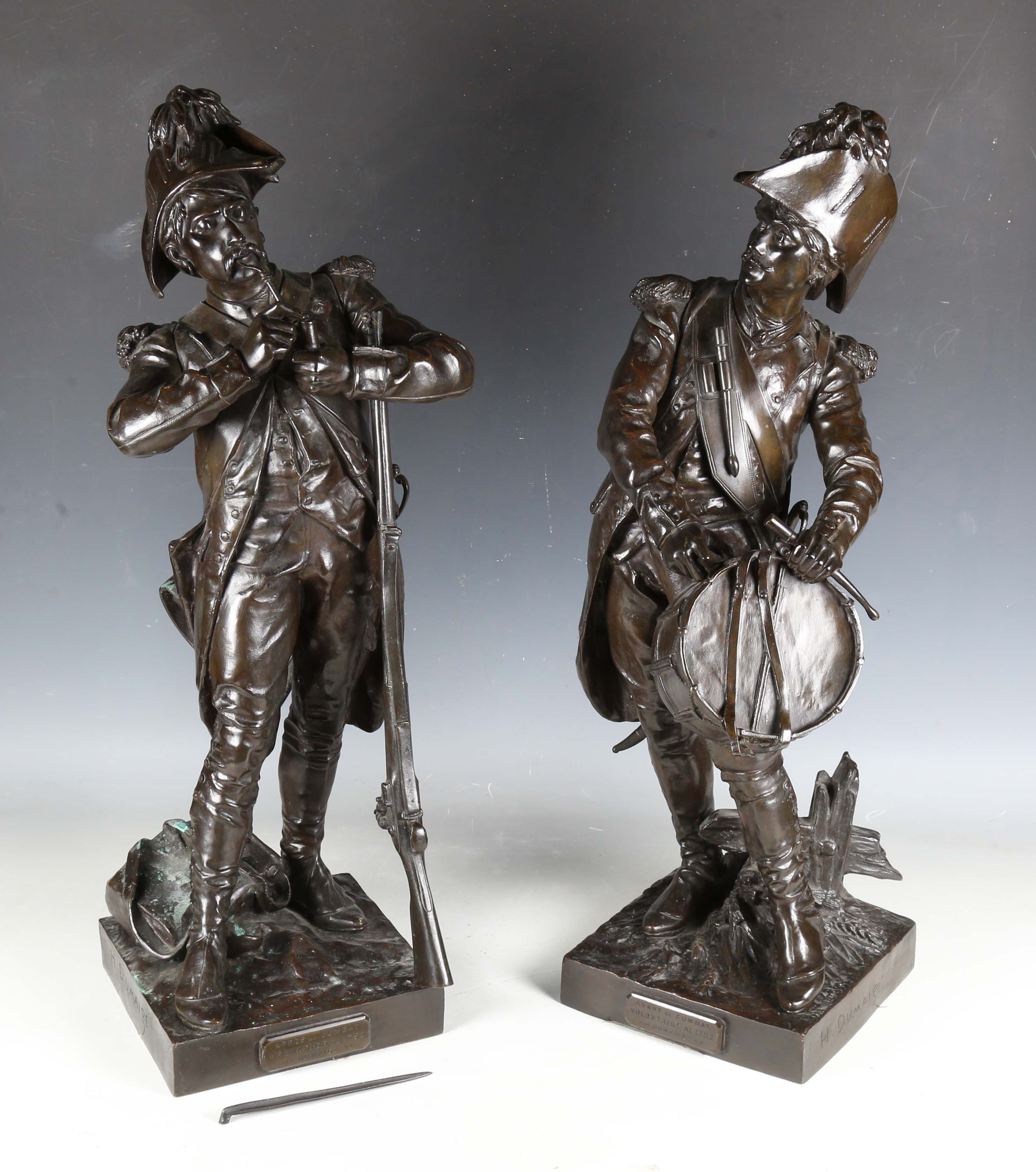 Etienne Henri Dumaige - a pair of 19th century French brown patinated cast bronze figures of Napoleonic soldiers, titled 'Apres le Combat Grenadier de 1792' and 'Avant le Combat Volontaire de 1792', bearing cast signatures to bases, height 66cm.