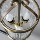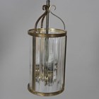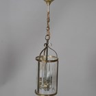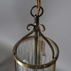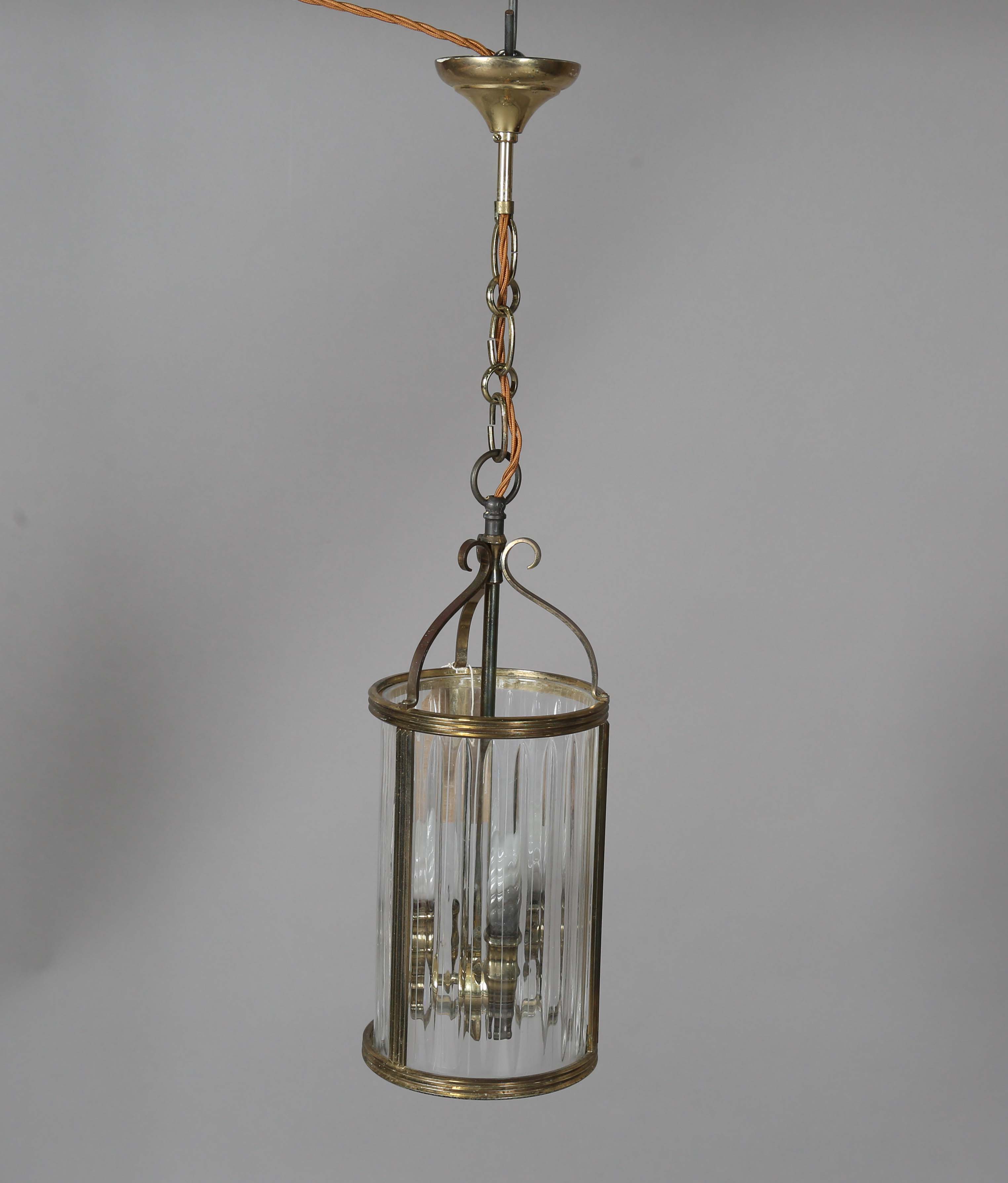 An early 20th century French gilt brass framed and moulded clear glass cylindrical ceiling lantern, height 42cm, diameter 16cm.