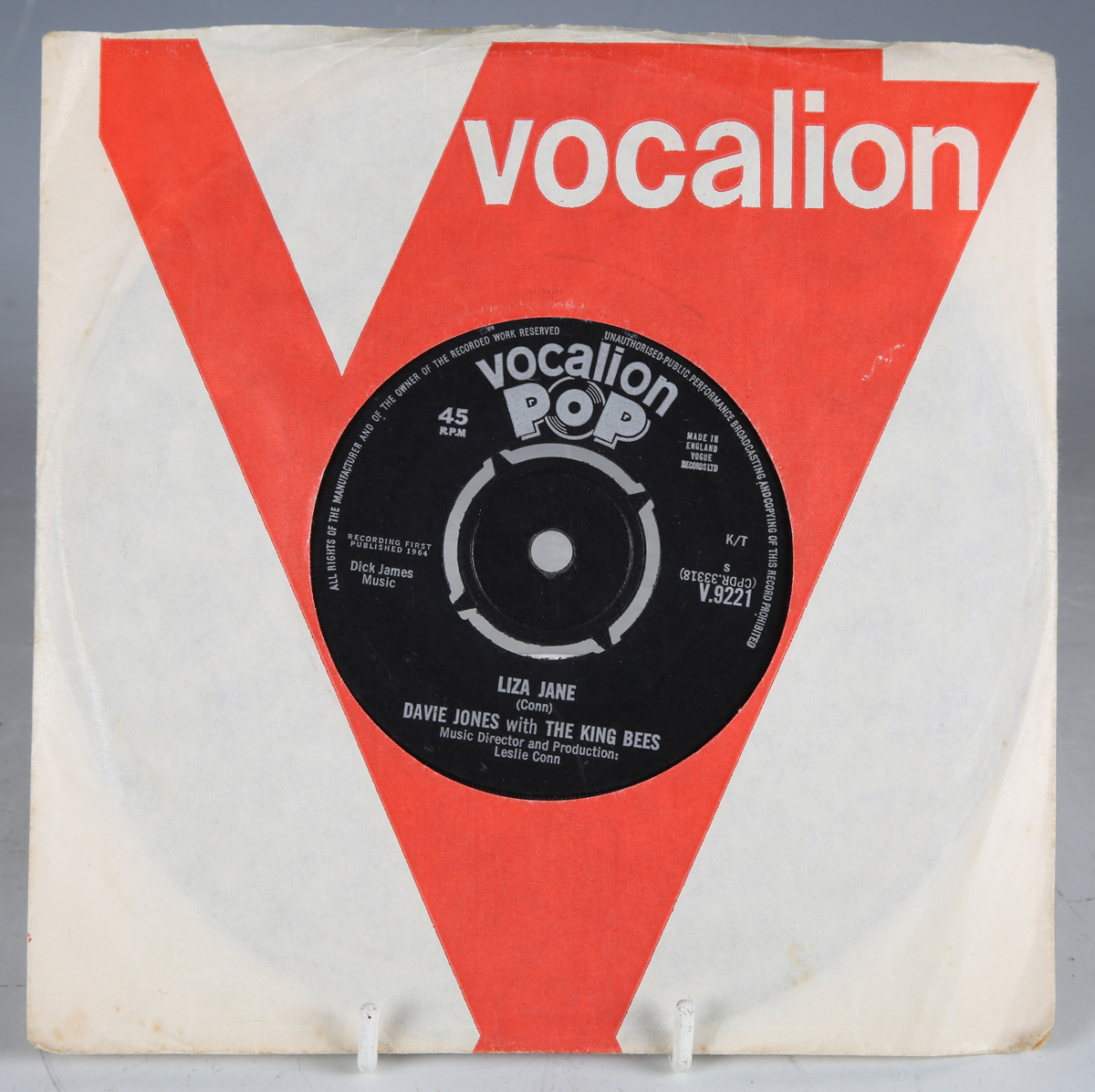 A single record by Davie Jones with The King Bees (early David Bowie), 'Liza Jane', on the Vocation label, Cat. No. V.9221.