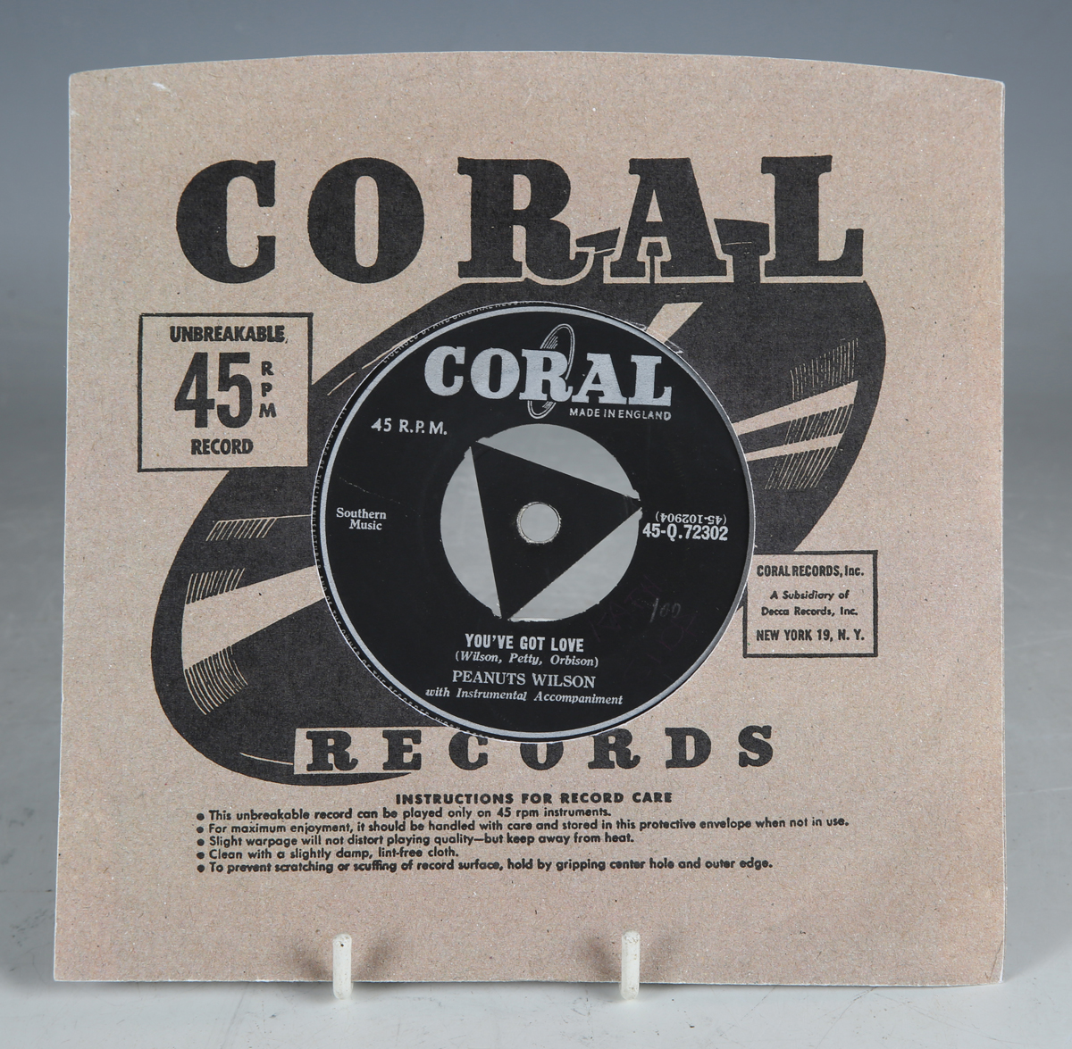 A single recorded by Peanuts Wilson, 'You've Got Love' / 'Cast Iron Arm', Coral label, Cat. No. 45-Q.72302.