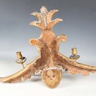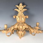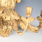 An unusual Regency giltwood four-light wall sconce with an acanthus leaf and pineapple backplate, height 42cm, width 59cm.