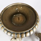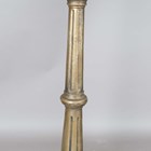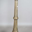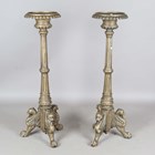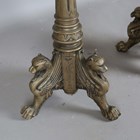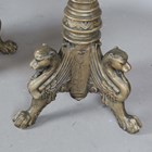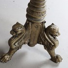 A pair of large 20th century gilt painted cast metal floor-standing pricket candlesticks, each fluted stem raised on three leopard headed supports, height 123cm.
