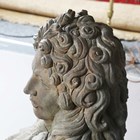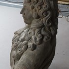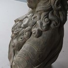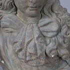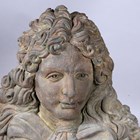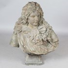 An impressive 19th century French carved stone bust of Louis XIV, raised on a later cast composition stone socle, height 80cm, width 64cm (small break to corner of pedestal).
