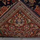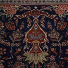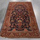 A fine Kashan part silk prayer rug, Central Persia, early 20th century, the midnight blue mihrab with overall ascending plants, within a red palmette and vine border, 207cm x 133cm.