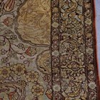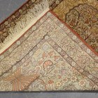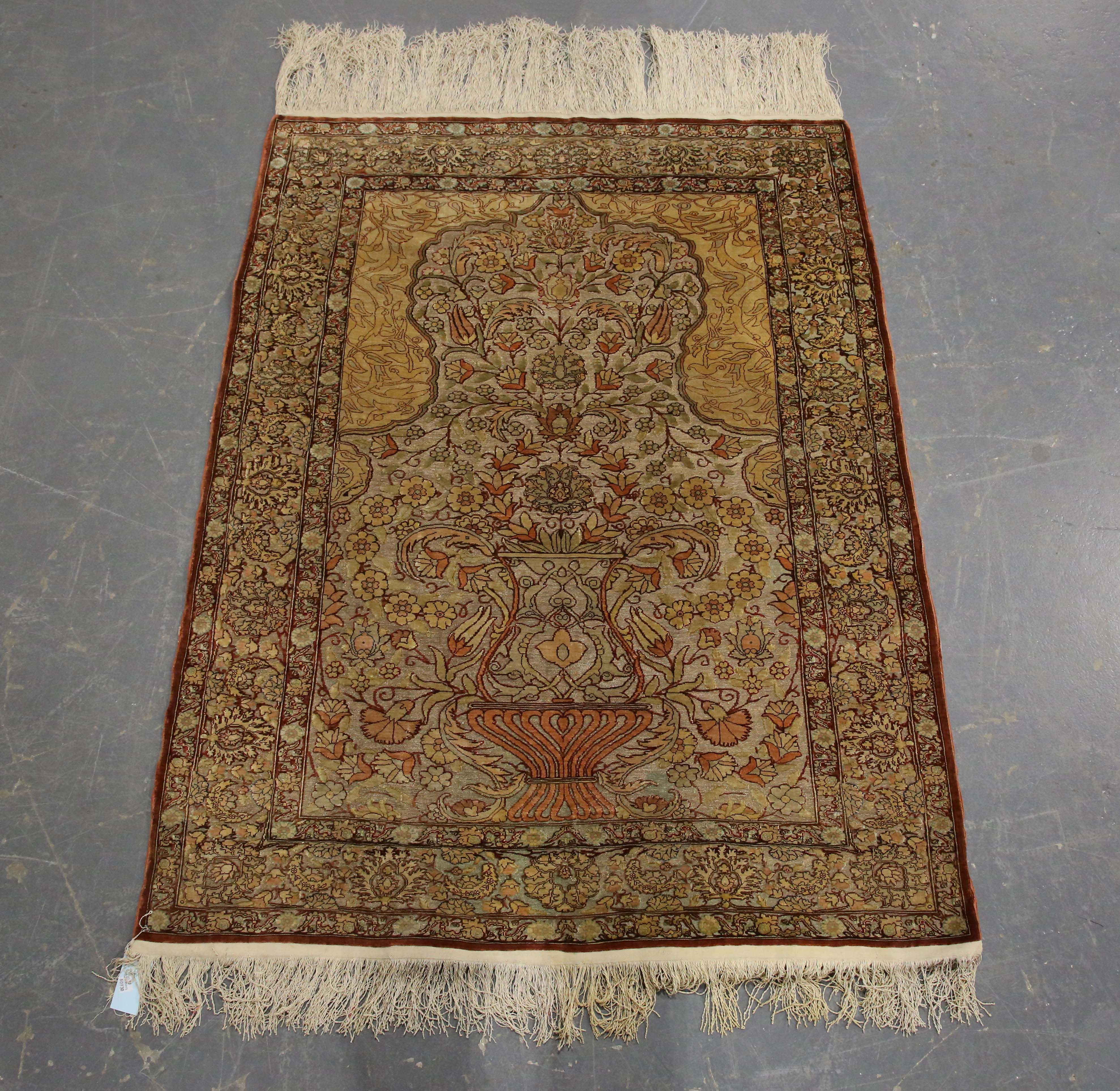 A fine Hereke gilt metal thread and silk prayer rug, mid-20th century, the gilt thread mihrab with a vase issuing ascending flowers, within a palmette and curled leaf border, 128cm x 96cm.
