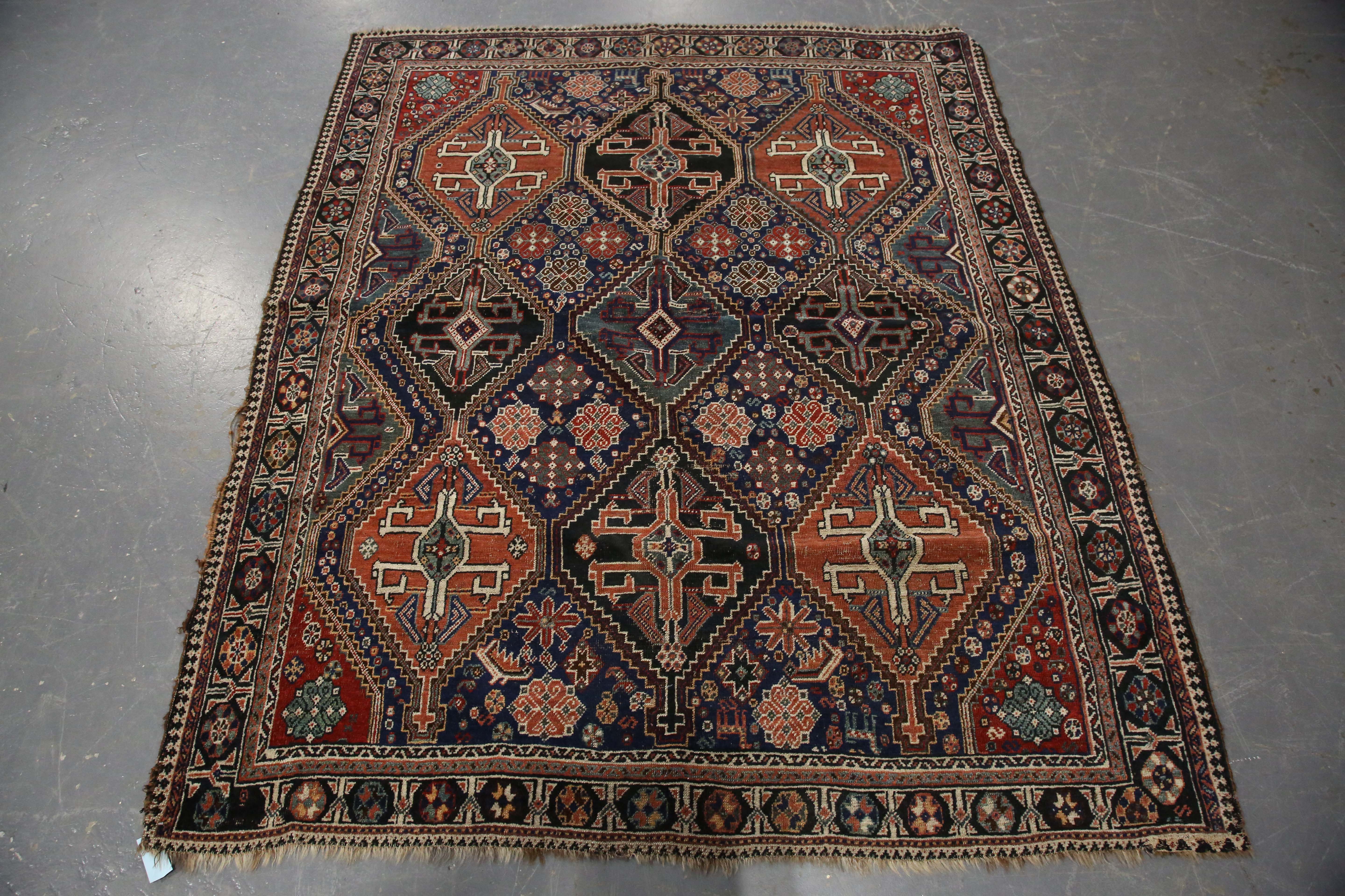 A Khamseh rug, South-west Persia, early 20th century, the midnight blue field with overall offset medallions, within a complimentary border, 193cm x 162cm.