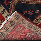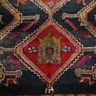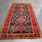 A Hamadan rug, North-west Persia, mid/late 20th century, the charcoal field with five linked medallions, within a red border, 307cm x 156cm.