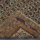 A Dagestan rug, North Caucasus, late 19th/early 20th century, the ivory field with an overall stylized plant lattice, within a hooked motif border, 206cm x 130cm.
