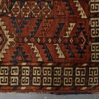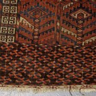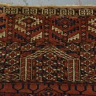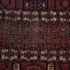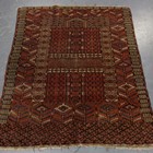 A Turkestan ensi, late 19th century, the pale claret field with four compartments enclosing stylized candelabra, within a stylized plant border, 145cm x 117cm.
