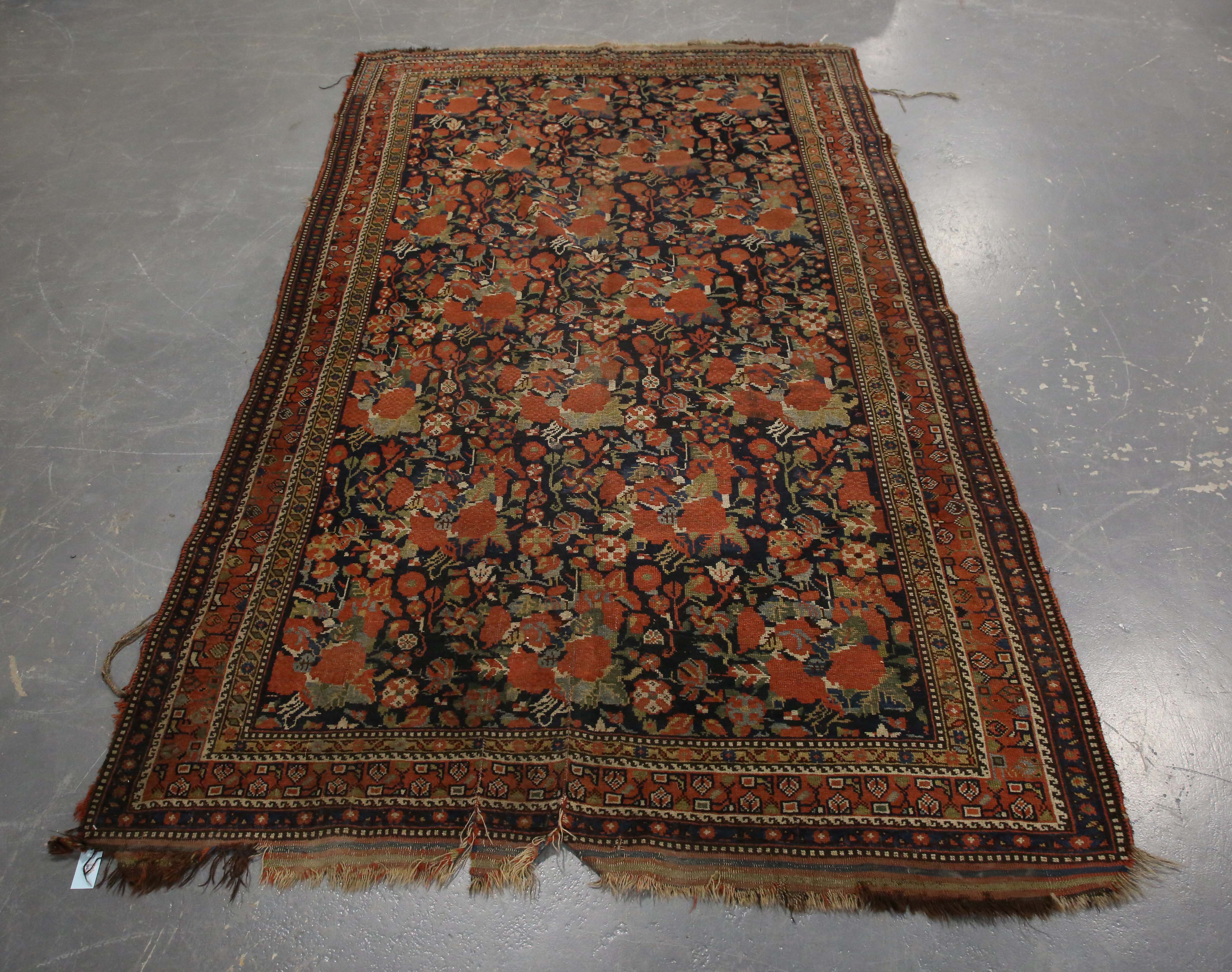 An Afshar rug, North-east Persia, early 20th century, the midnight blue field with overall rose sprays, within a terracotta stylized plant border, 272cm x 157cm.