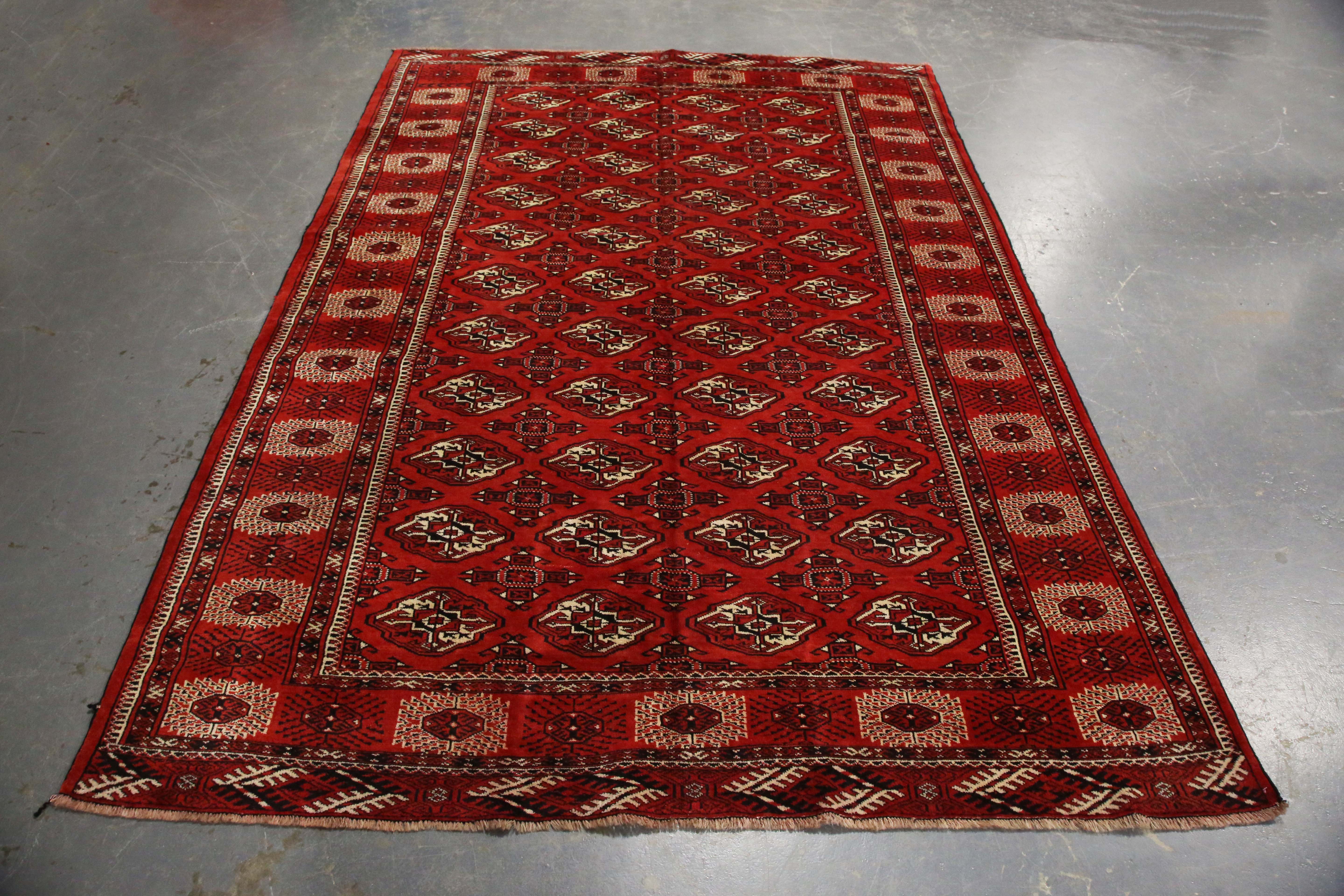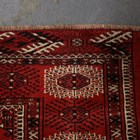 A Turkestan carpet, late 20th century, the claret field with four columns of guls, within a sunburst gul border, 280cm x 198cm.