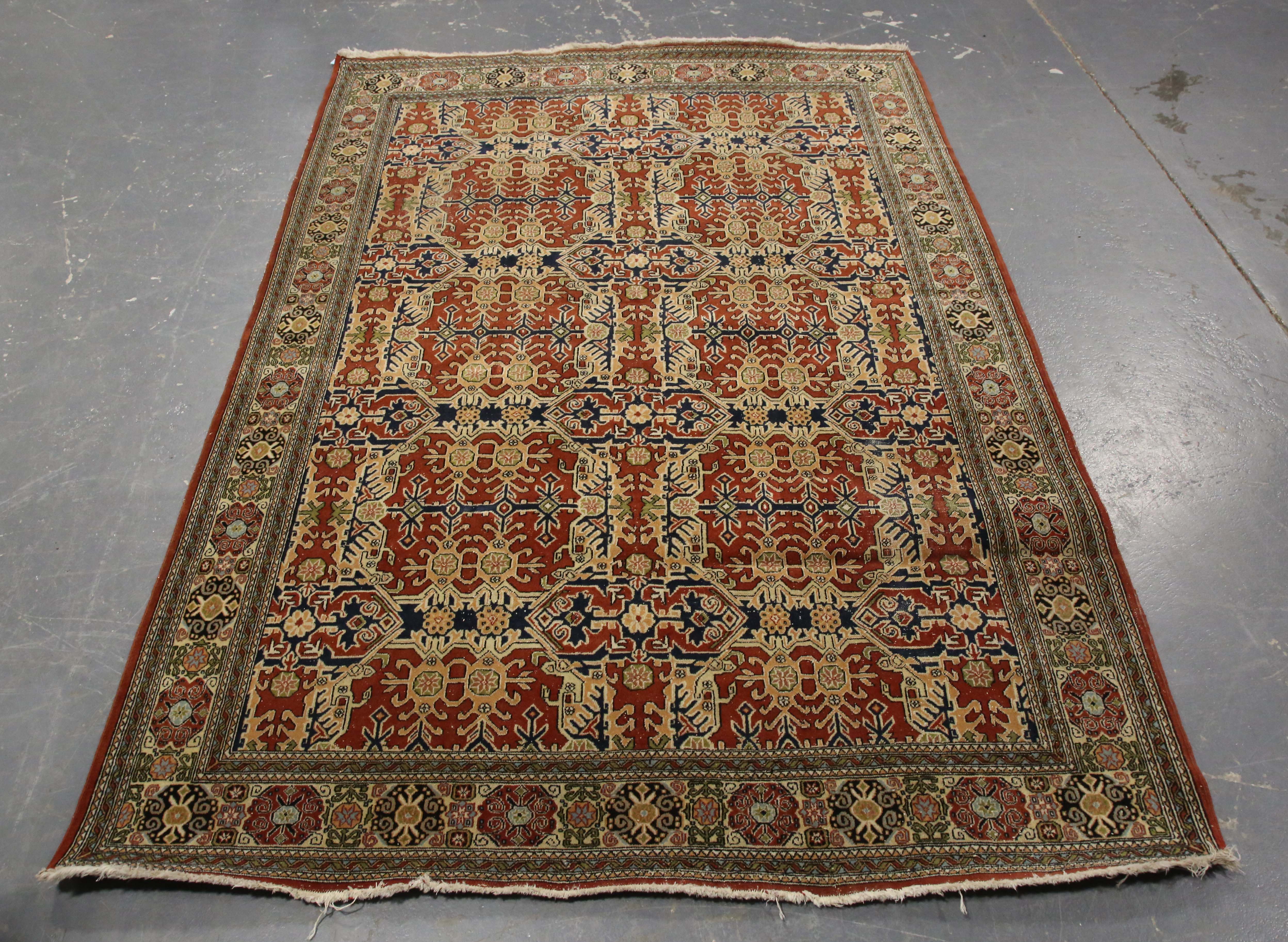 A Hereke rug, Turkey, mid-20th century, the chestnut field with overall hooked palmettes, within a complimentary border, 235cm x 166cm.