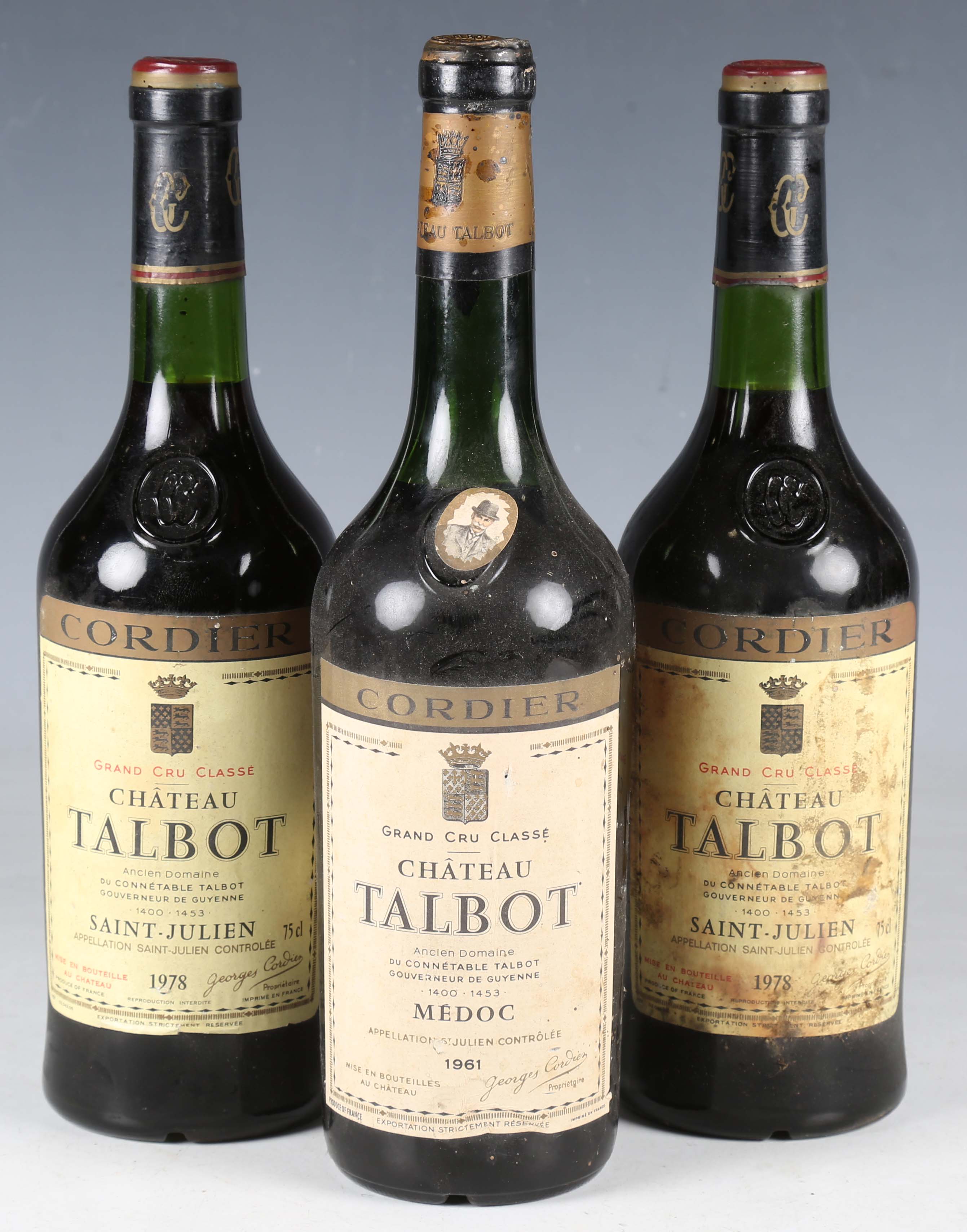 Château Talbot Médoc Grand Cru Classé, 1961 (1), Château Talbot Saint-Julien Grand Cru Classé, 1978 (2).