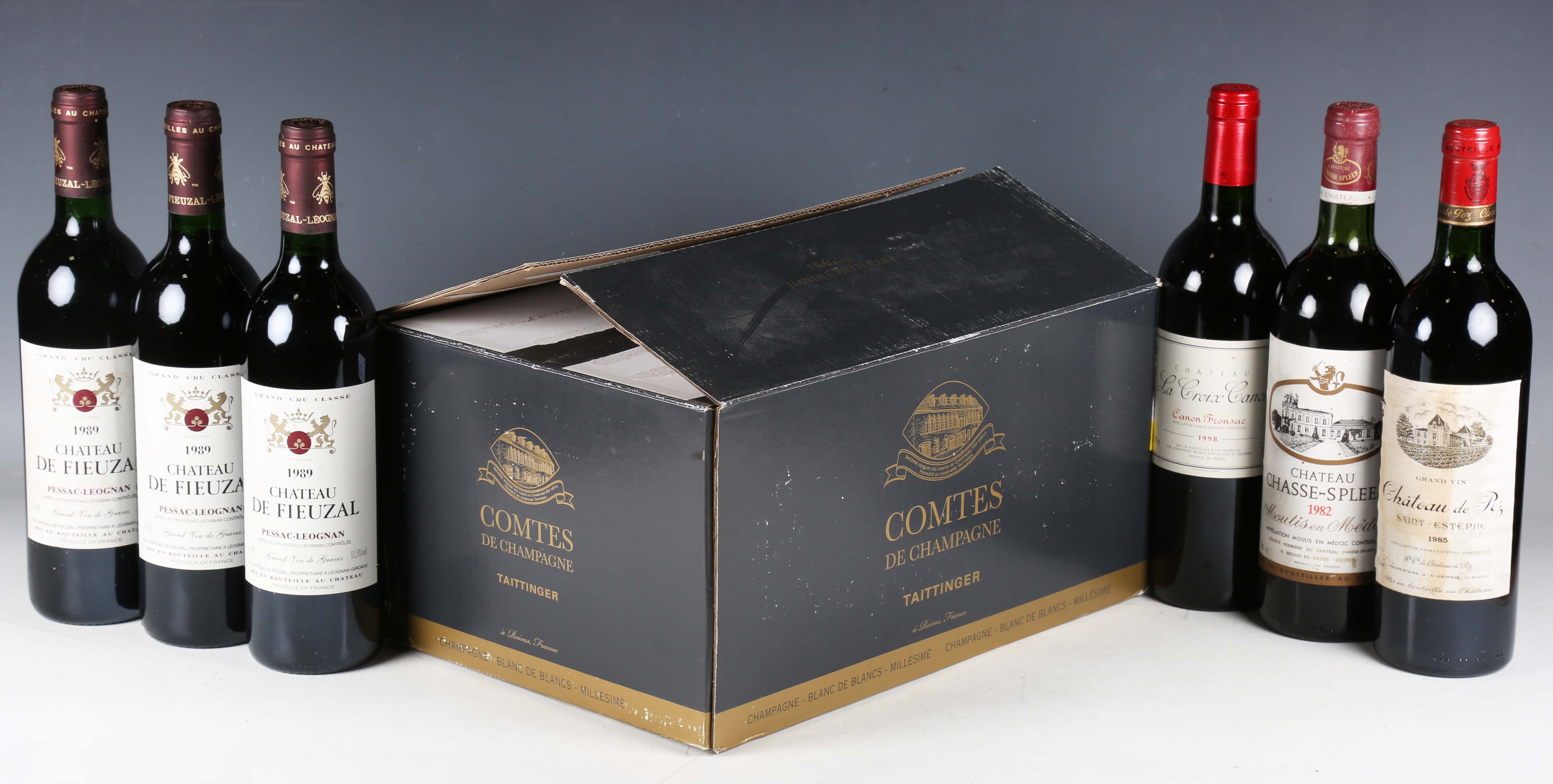 Château de Fieuzal Pessac-Leognan, 1989 (3), Château Chasse-Spleen Moulis en Médoc, 1982 (1), Château de Pez Saint-Estèphe, 1985 (1), Château La Croix Canon Canon-Fronsac, 1998 (1).