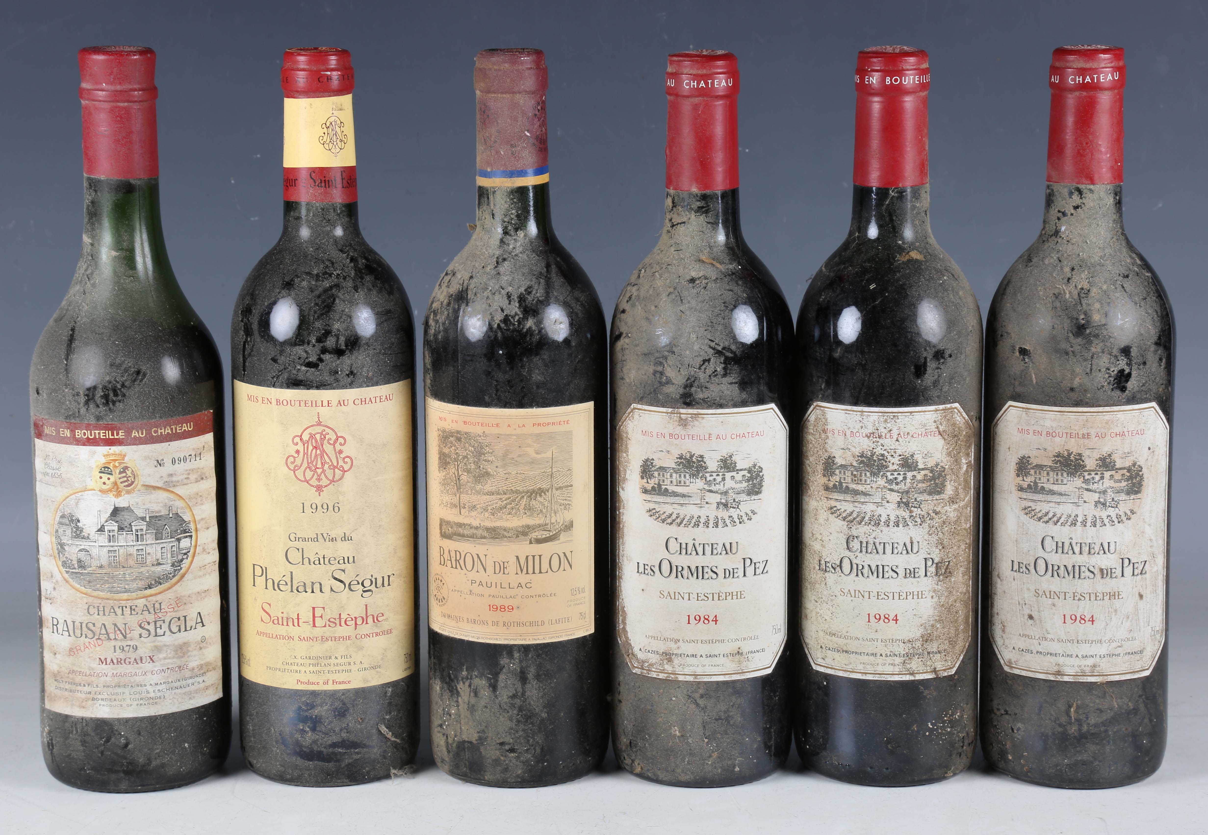 Château Les Ormes de Pez, Saint-Estèphe, 1984 (3), Château Rausan Segla Margaux Grand Cru Classé, 1979 (1), Baron de Milon Pauillac, 1989 (1), Château Phélan Ségur, Saint-Estèphe, 1996 (1).