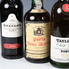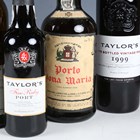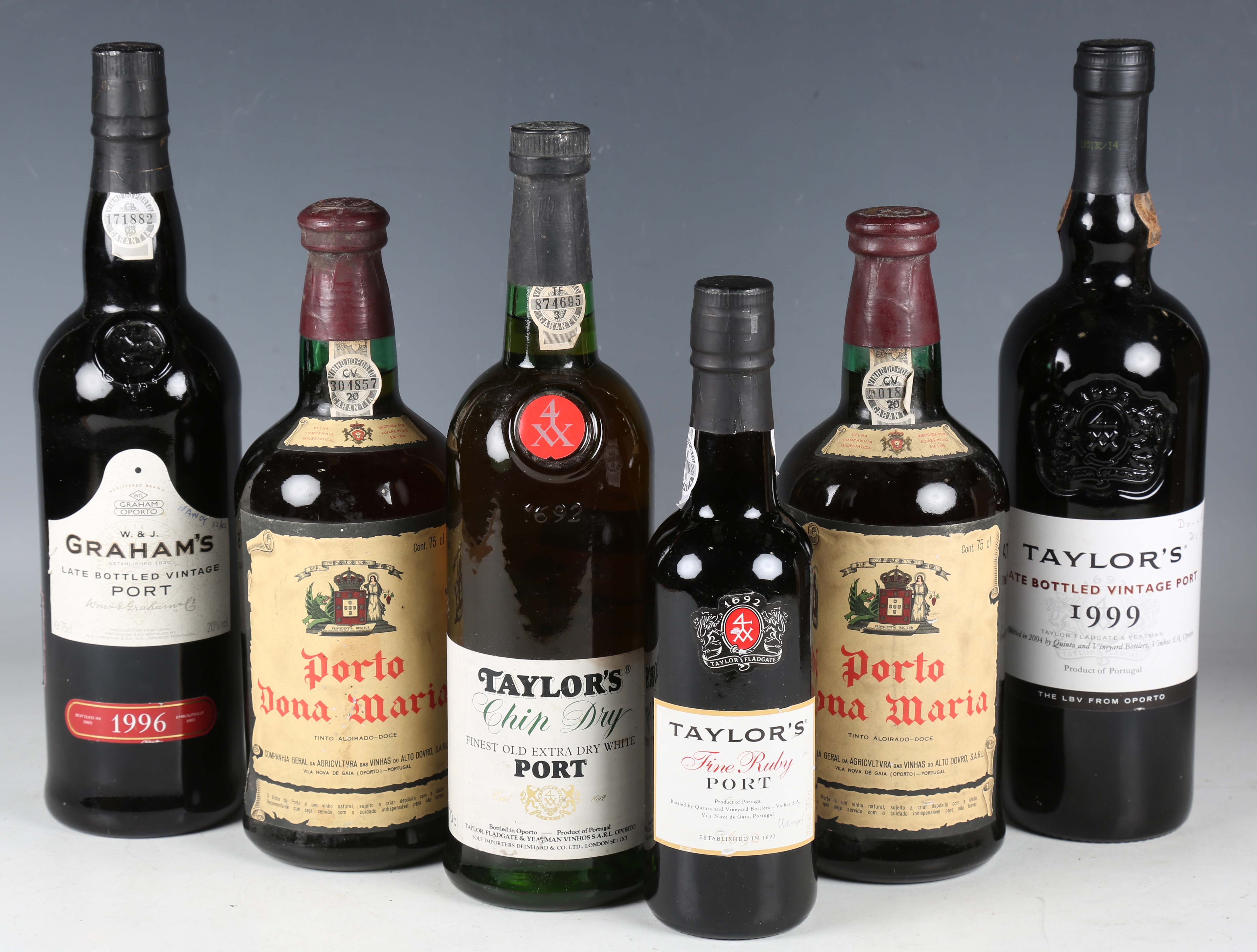 Porto Dona Maria (2), Graham's Late Bottled Vintage Port, 1996 (1), Taylor's Late Bottled Vintage Port, 1999 (1), Taylor's Chip Dry Extra Dry White Port (1), Taylor's Fine Ruby Port, half-bottle (1).