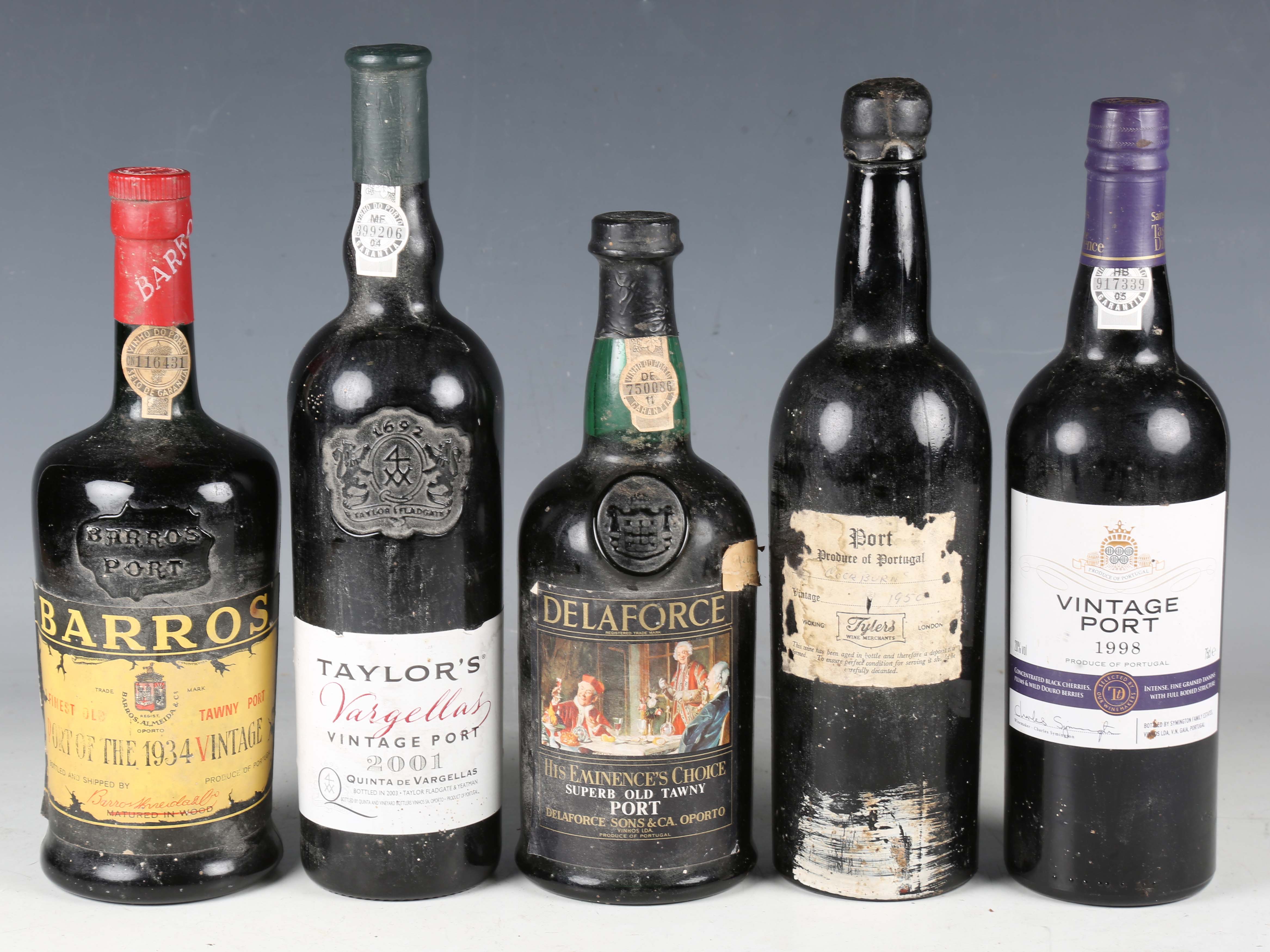 Cockburn's Vintage Port, 1950 (1), Barros Port of the 1934 Vintage (1), Taylor's Vargellas Vintage Port, 2001 (1), Delaforce Superb Old Tawny Port (1), Symington Family Estates Port (1).