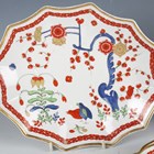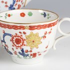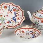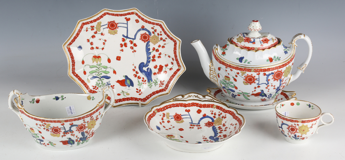 A small group of Barr Worcester wares decorated in the Two Quail pattern, late 18th/early 19th century, Kakiemon style, comprising a teapot, cover and stand, two-handled sugar boat, length 19cm, a single handled circular dish, teacup with ring handle and an oval stand, length 25.5cm, some incised and impressed marks (restoration and minor faults). Provenance: The Flight Collection.